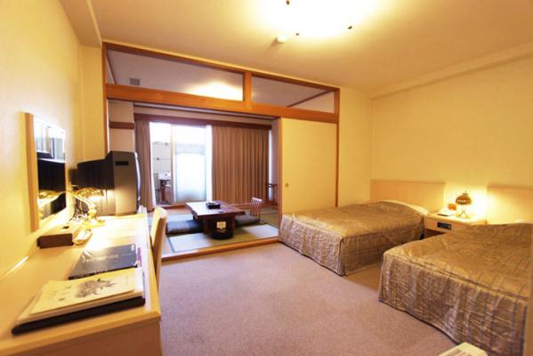 (▼写真=相模灘を一望する展望露天風呂。下は露天風呂付和洋室の一例)