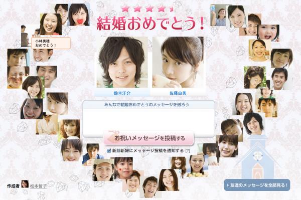 花嫁花婿第一主義を掲げる「みんなのウェディング」は、本アプリをご利用いただき、Facebook上に、楽しみながら友達の結婚をお祝いする新しい文化を創出したいと考えております。