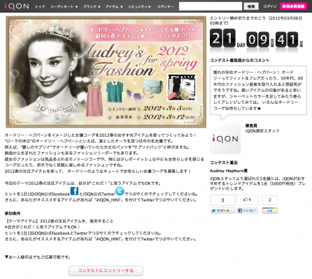 ▼iQON presents 『Audrey's Fashion for 2012 Spring』コンテスト詳細はこちら