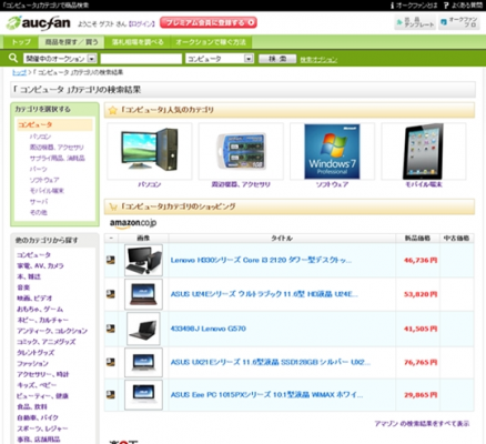コンピュータカテゴリの商品をショッピング・オークション共に横断的に検索したい場合