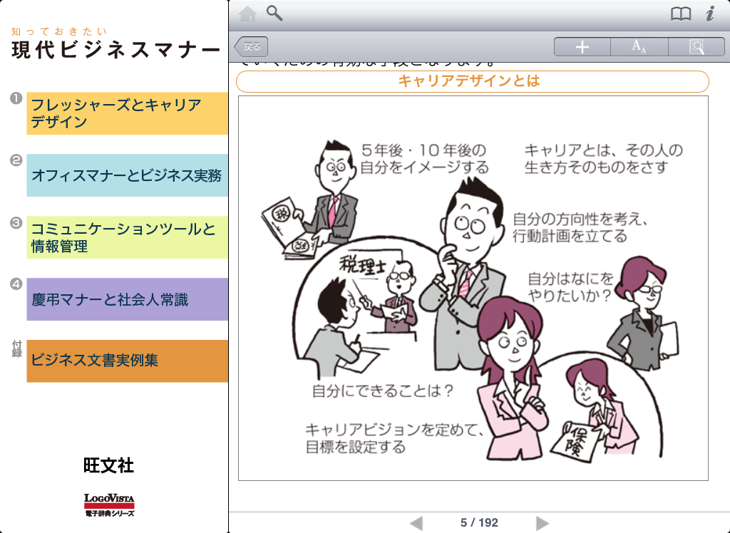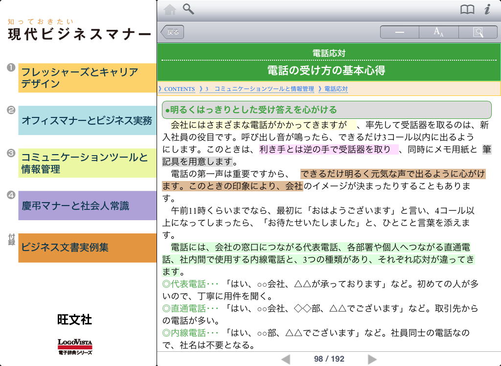 ●本文中の用語をなぞることで次々に辞書引きができるジャンプ検索機能。(*要iOS3.2以降)