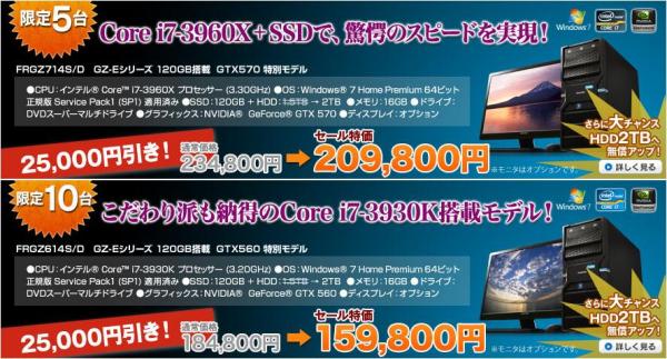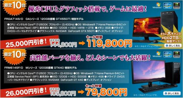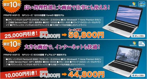 このSSDを搭載した“SATA3.0対応の120GB SSD”5モデル、“SATA2.0対応の80GB SSD”1モデルについて、【最大26,000円引き】の特別価格で販売いたします。