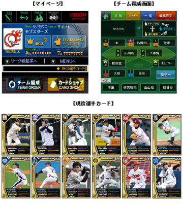ユーザーは、選手カード・監督カード・チームオーダーカードを集め、チームオーダーカードに自分好みの選手カードを配置することで自分だけの最強チームを作り上げ、日本一を目指して戦います。選手カードは、ユーザーが自分で強化することはできず、1シーズン毎に能力が変化するとともに、最適なチームオーダーやポジションも選手毎に異なります。そのため、強力な選手カードを集めればいいだけのカードゲームではなく、獲得した選手をどのチームオーダーに当てはめて戦うのかといった戦略性が必要であり、深いゲーム性をユーザーは体感できます。また、選手カード、監督カードには、現役プロ野球選手、監督さらにOB選手、OB監督ら約400名以上が実名・実写真で登場し、選手データにはNPBBISプロ野球公式記録を使用しております。