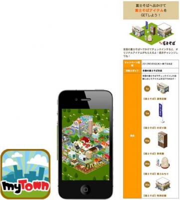 株式会社ゆめみ(本社:東京都世田谷区、以下ゆめみ)の提供する、位置情報連動ソーシャルゲームアプリ「MyTown(マイタウン)」iPhone版にて、美味しい立食いそばチェーンの「富士そば」が3月9日より登場しました。