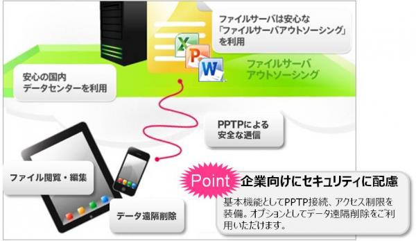 ※本サービス「ファイルサーバ スマホ&タブレット」ご利用には「ファイルサーバアウトソーシグ」の契約が必須となります。