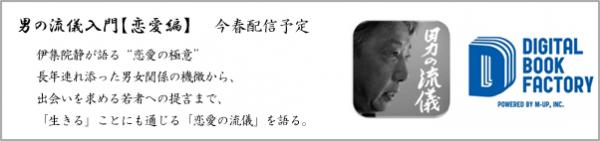 その第一弾として、作家・伊集院静が恋愛の深淵について男の目線で語る恋愛哲学書「男の流儀入門【恋愛編】」を今春リリースいたします。