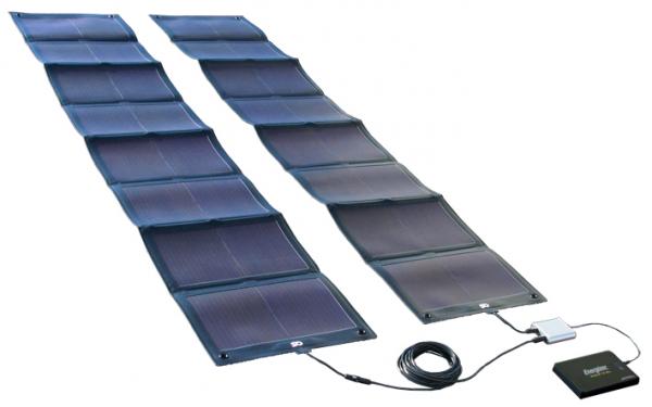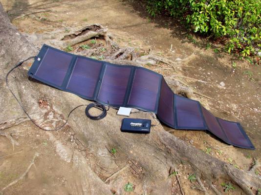 ・ フレキシブルなアモルファス太陽光発電シートを採用しているために、軽く、折りたたみが可能で、どこへでも持ち運びが簡単