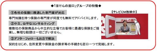 (※)店舗数:249店舗【ほけんの窓口:143店舗 みんなの保険プラザ:74店舗 ほけんの専門店:32店舗】(2012年3月24日予定)