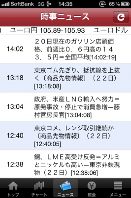 時事通信社の最新の国内市況やニュースも配信されます。