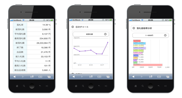 ●オークション出品者の売り上げ最大化を支援!ヤフオク取引価格情報など、スマートフォンで多機能分析が可能なツールを提供