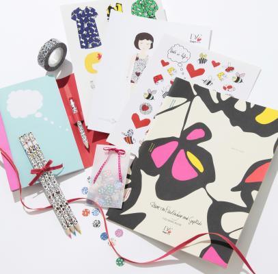 塗り絵やシール、ノート、鉛筆、色鉛筆などが含まれます。