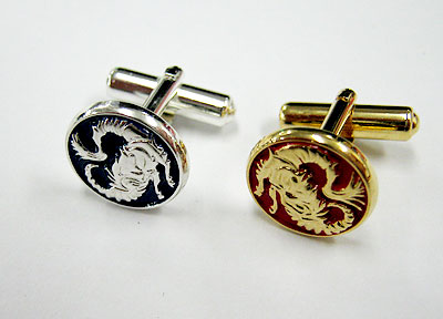 クラリスと伯爵、それぞれの指輪をモチーフにしたカフスボタン。