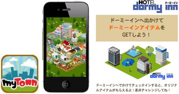 ルゲームアプリ「MyTown(マイタウン)」iPhone版に、株式会社共立メンテナンス(本社:東京都千代田区)の運営するホテル、ドーミーインが3月28日(水)より登場します。