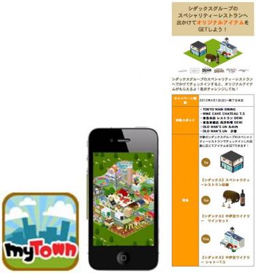 ルゲームアプリ「MyTown(マイタウン)」iPhone版に、シダックスレストランマネジメント株式会社(本社:東京都渋谷区)が運営する6つのスペシャリティーレストランが4月1日(日)より登場します。