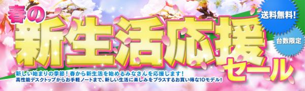 FRONTIERはこのたび、『春の新生活応援セール』として、新生活シーズンに需要の多いノートPCをはじめ、スタイリッシュなデザインでどんなお部屋にもマッチする人気のスリムタワーなど、人気の10機種を取り揃え、お値打ち価格でご用意しました。