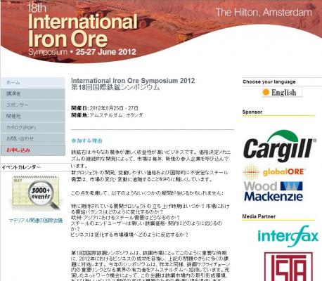 株式会社グローバル インフォメーションでは、皆様の利便性を図る為に、日本語、韓国語、中国語で「18th International Iron Ore Symposium (第18回国際鉄鉱シンポジウム)」の情報を提供するとともに、会議の参加のお申し込みを承っております。