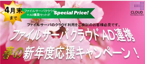 「ファイルサーバ クラウドAD連携 春の新年度応援キャンペーン」について詳しくは、下記Webサイトをご覧ください。