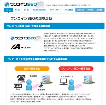 SEOサービスを提供する 株式会社IA(本社:東京都品川区、代表取締役:山岸 裕)は、2012年4月02日より、企業が気軽にはじめられる環境認証サービス「グリーンサイトライセンス」を提供しているラウル株式会社とコラボ企画を始めました。