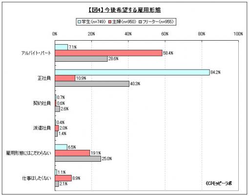 ■学生は「正社員」を希望し、主婦は「アルバイト・パート」を希望