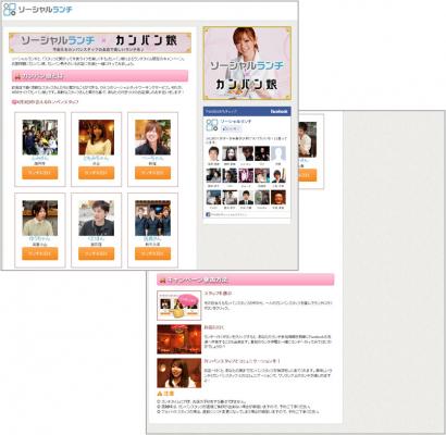 今日会えるカンバンスタッフをソーシャルランチのサイト内に設置される特設ページにて、毎日数名ずつ紹介致します。閲覧ユーザの皆様は、その日会えるカンバンスタッフの中から、一人のカンバンスタッフを選んで『ランチに行く』ボタンをクリックし来店するというシンプルなキャンペーン。