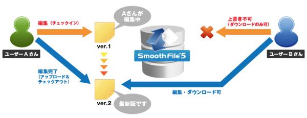 製造業や建設業、広告・印刷業等では複数の企業が合同でプロジェクトを進行する事が多く、Smooth Fileにて複数の企業ユーザー同士でファイル共有を行なっていましたが、複数のユーザーが同一のファイルをダウンロードして編集してしまうなど、ファイルの版(バージョン)にずれが発生してしまうケースがありました。