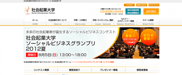 「ソーシャルビジネスグランプリ2012 夏」で理想の社会へのビジネスプランを競います。