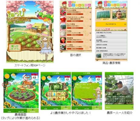 2010年6月のサービス開始以来「ゲーミフィケーション」の理論を活用し、3万5千個以上の作物を農家さんから直接ご自宅にお届けしています。現在au公式サイト、スマートフォン、光iフレームをプラットフォームを拡充し、5万人以上のお客さまにご利用いただいております。定期的に変わる各地域のスペシャルコンテンツを通じて、仮想(バーチャル)農園で野菜や果物、牛などを育て、収穫・搾乳すると、本物の作物や乳製品が自宅に届くという画期的なサービスとしてお楽しみいただいています。お客さまが実際にその地域に足を運ぶ機会を創出、「地域の作物収穫」「地域生活」をリアルに体験できるこれまでにないソーシャルサービスを提供しています。