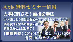 ≪Axis無料セミナー≫【IT/WEB/コンサル業界】人事に刺さる!面接必勝法【2012/4/25(水)】