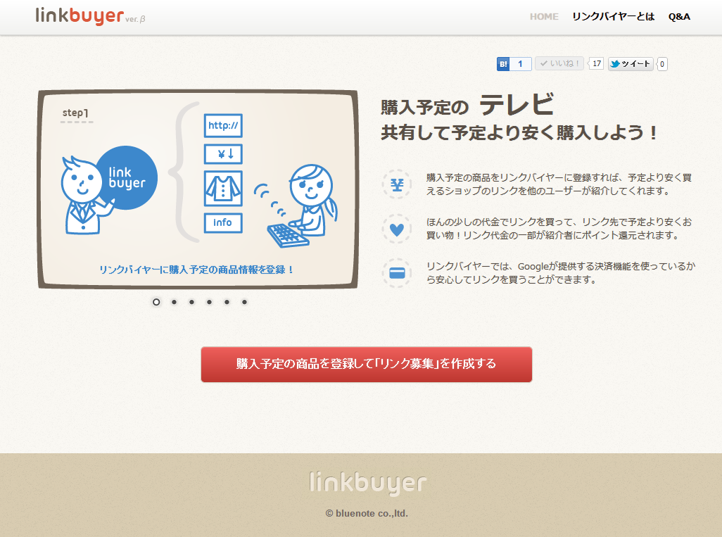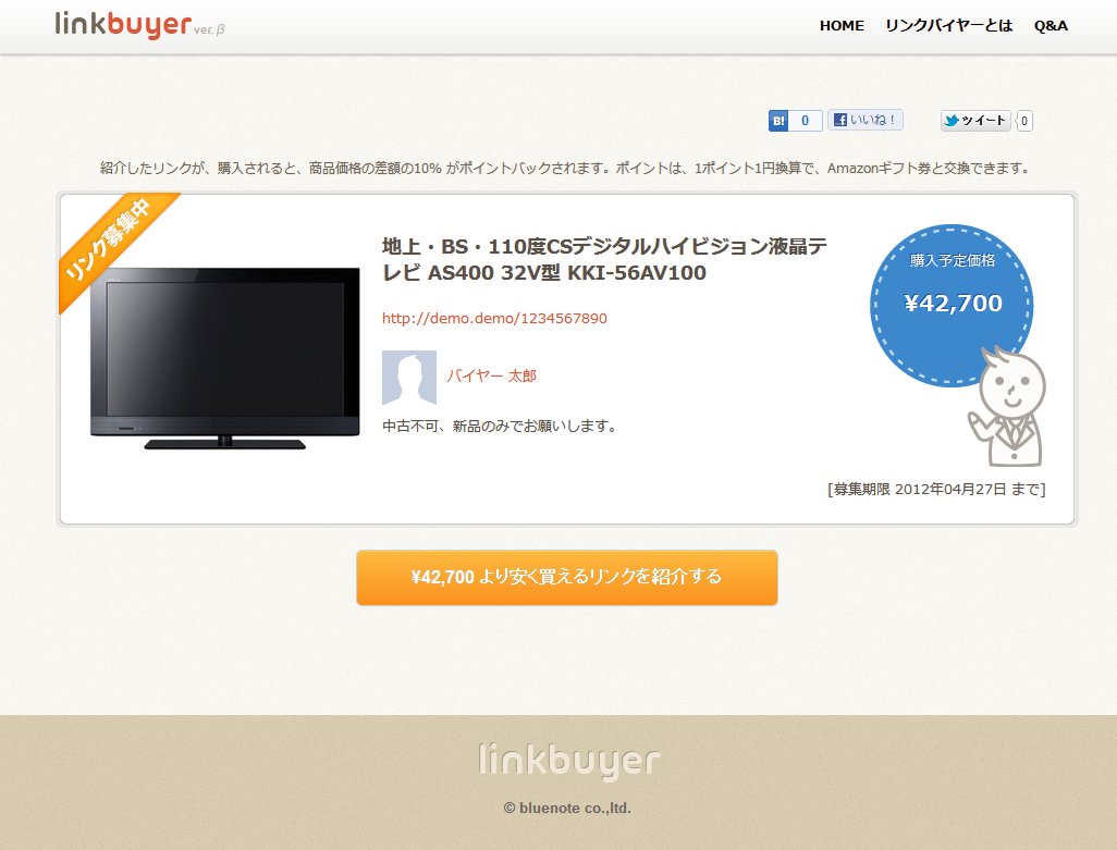 株式会社ブルーノート(本社:東京都渋谷区、代表取締役:秋元 悟郎、以下、ブルーノート)は、ソーシャルリンク買取サービス『リンクバイヤー』を2012年4月13日に開始いたしました。