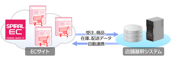 パイプドビッツのアパレル専門チームは、業務負荷の軽減と販売機会の損失を回避するために、「スパイラルEC(R)」のモールコントロール機能を用いて、店舗基幹システムとECシステムとの間で商品在庫、受注、配送データなどを自動で同期するシステム連携を実施いたしました。