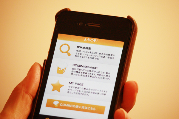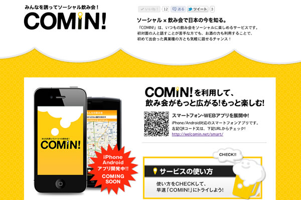 <飲み会お誘いサービス「COMIN!(カミン!)」 2012年4月19日リリース>