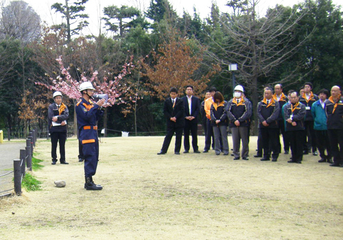 当日は役員ならびに各部部長をはじめ本部員159名が参加し、また地域自治会(上八北自治会)副会長(山下 清吉)様はじめ役員の方々7名のご参加をいただき、総員166名での訓練となった。