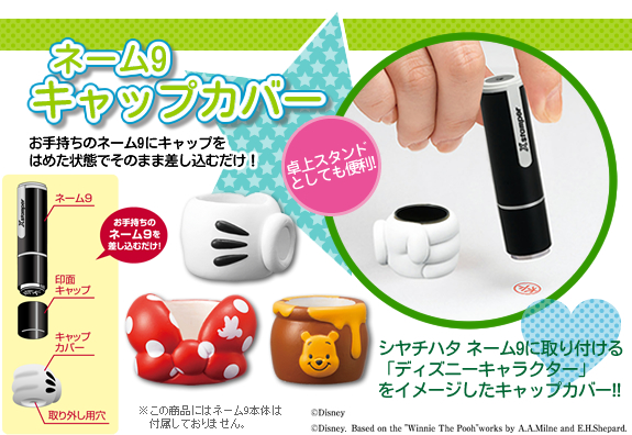 かわいいディズニーキャラクターを飾り付けできる、ネーム9専用のキャップカバーです。