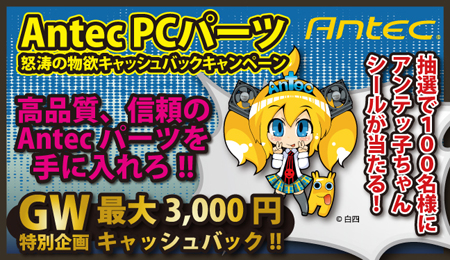Antec PCパーツ「怒涛の物欲キャッシュバックキャンペーン」