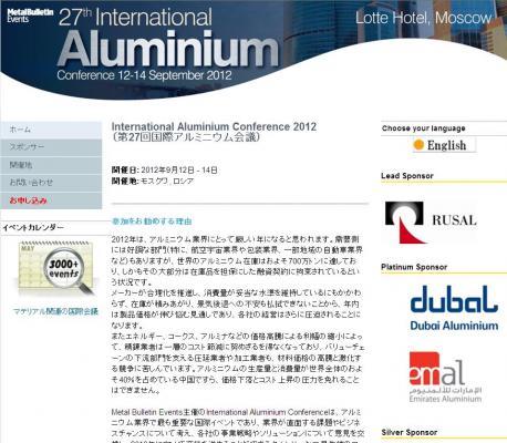 Metal Bulletin Events主催のInternational Aluminium Conferenceは、アルミニウム業界で最も重要な国際イベントであり、業界が直面する課題やビジネスチャンスについて考え、各社の事業戦略やソリューションについて意見を交換し、2013年に向けて商談を進めることができるタイムリーかつ最先端のフォーラムです。今年の会議は、ロシア共和国の首都モスクワで開催される予定です。ロシアには、アルミナ精錬所が4ヶ所、アルミニウム精錬所が12ヶ所あり、下流部門やアルミニウムを消費する産業も拡大しています。またモスクワには、世界最大級のアルミニウム生産企業(2011年の生産量はおよそ412万トン)であるUC Rusalの本社もあります。