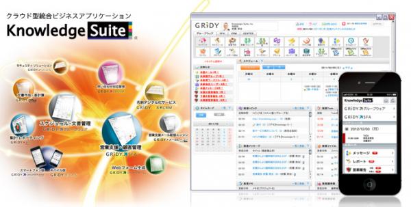 『Knowledge Suite(ナレッジスイート)』とは、12,000社以上の企業・団体に導入されている『GRIDY グループウェア』を基盤とした、クラウド型リード育成基盤 営業支援SFA/顧客管理CRM 統合ビジネスアプリケーションです。