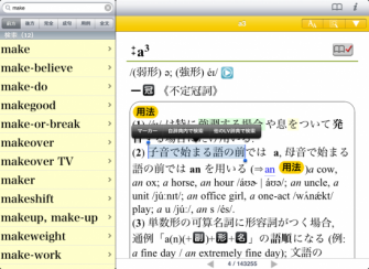 ●本文中の用語をなぞることで次々に辞書引きができるジャンプ検索機能。