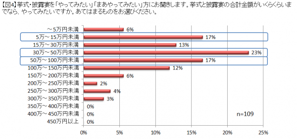 また、「希望金額」について聞いたところ、「30万~50万円未満」が23%と最も多く、「5万~15万円未満」と「50万~100万円未満」が17%と続きました【図4】。