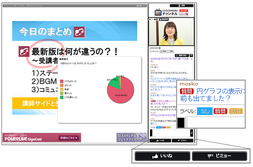 ロゴスウェア、Webセミナーシステムに「いいね・ビミョー」共有機能を搭載