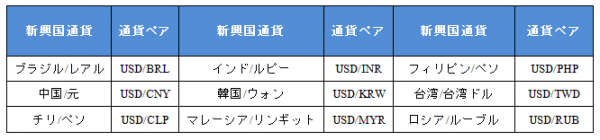 IGマーケッツ証券株式会社は、2012年5月10日より、経済成長著しい中国の通貨・元やブラジルの通貨・レアルといった新興国通貨のお取引を新たに開始いたしました。対象となる新興国通貨とお取引が可能な通貨ペアに関しては、下記の表をご覧ください。