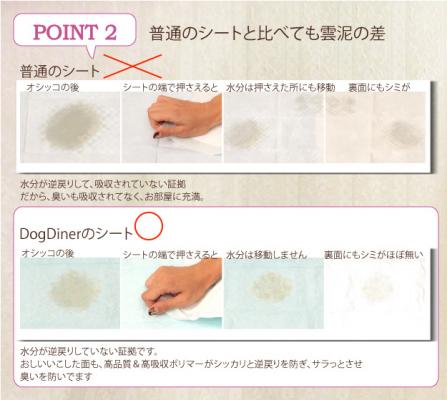 業界NO.1!吸収力【ドッグダイナー トイレシート】は、従来のトイレシートより吸収力を強化し、お部屋の臭いや、絨毯、床の汚れを防ぐ優れたトイレシートになります。