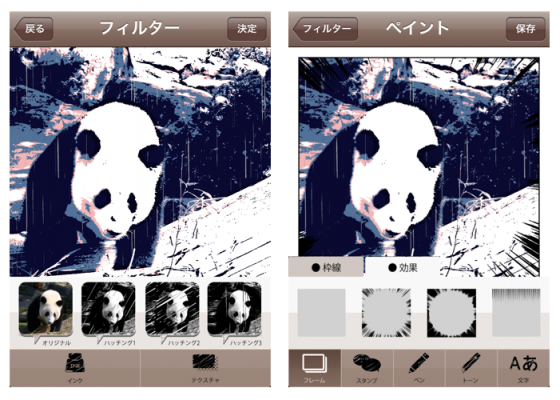 カラー×トーンをお好みで組み合わせられるフィルターで写真を簡単に漫画風にアレンジ。