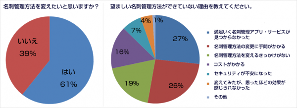 しかし、名刺フォルダを利用している人のうち60.7%が名刺管理に不満があり、管理方法を変えたいと回答しています。