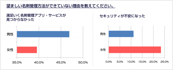 上記から、デジタル管理への関心が高いにも関わらず名刺管理アプリの利用が定着していないのは、満足がいくような「決定版」サービスが広まっていないことが大きな理由の一つだと考えられます。