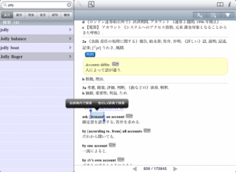 ● 本文中の用語をなぞることで次々に辞書引きができる検索ジャンプ機能。(*要iOS3.2以降)