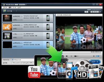 Wondershare『動画・音楽変換6!』(Win版)は、あらゆる動画・音楽ファイルの変換に対応可能で、まさに強力な変換ソフトウェアです。様々なビデオ形式に対応しており、特にiPhone 4S、iPhone 4 HD、iPhone・iPod・iPad用の動画が楽々変換できます。動画・音楽、あらゆるプレーヤーで楽しめます!