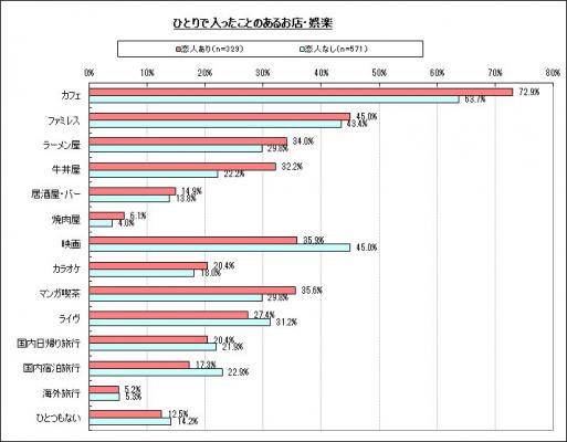 図表参照:【図3】ひとりで入ったことのあるお店・娯楽(恋人有無別)