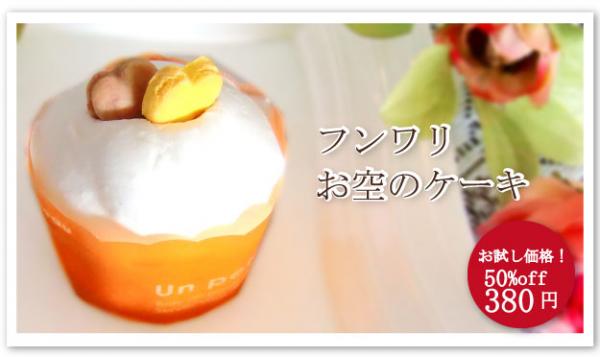 【フンワリお空のケーキ】は、一つのケーキで3つの食感を楽しめるオヤツになります。