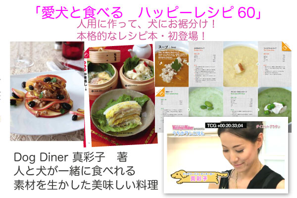 人用にごはんを作り、食べる時に犬にお裾分け。という、これまでのように、犬の為に手作りごはんを作るのではなく、自分達用にごはんを作り、それを犬に与えるという画期的なレシピ本「愛犬と食べるハッピーレシピ60」