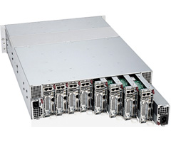 308MCモジュラー・サーバー・システムは、94%以上の高エネルギー変換効率を達成した80Plusプラチナ規格1620W(3)高効率)リダンダント電源と、全てのサーバー・ノードとリムーバブル・ベイを効率よく冷却する4台のPWM(Pulse Width Modulation)方式ホットスワップ冷却ファンによる高効率冷却機構を採用した環境配慮設計です。8台のサーバー・ノードはメンテナンス性に優れた高密度オープン・フレーム型構造で、貴重なデータ・センターのスペースを有効に活用します。